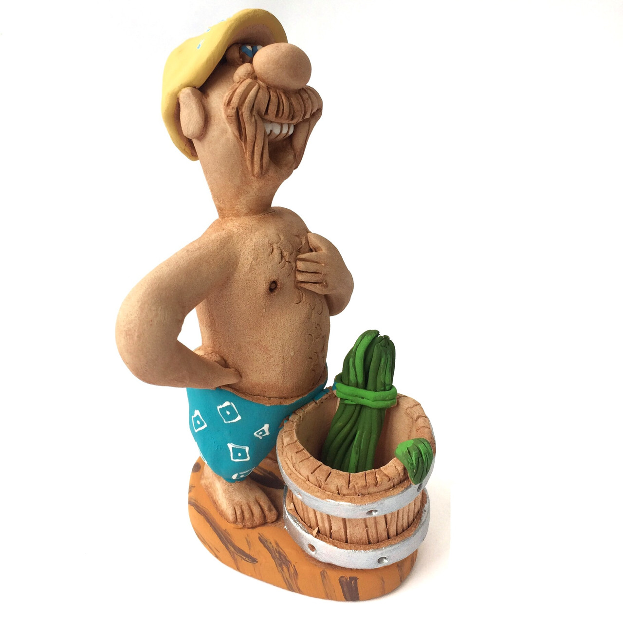 Керамічна статуетка виконана з натуральної глини, а також покрита фарбами за допомогою пензликів вручну. Розмір: 10х12 см. Відмінний подарунок любителю лазні!