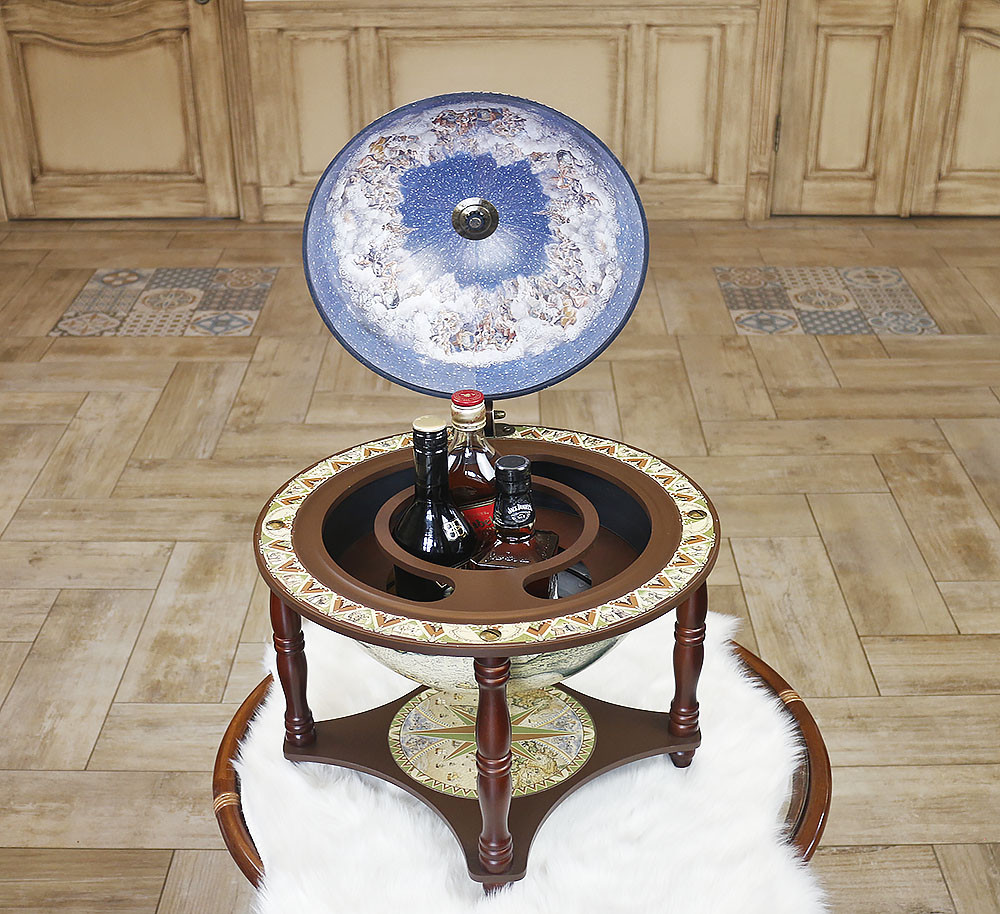 Абсолютно нова модель – настільний глобус – бар на 4-х ніжках. Стане шикарним подарунком любителям елітного алкоголю. Адже дорогий напій має зберігатися у темному та прохолодному місці. Саме такий бар – ідеальна заміна холодильника. Добре впишеться в домашній або офісний інтер’єр.