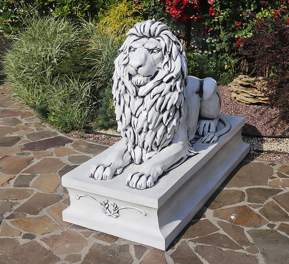 Велика садова скульптура Лева – чудовий декор Вашого саду. Лев – символ влади й сили, тому їх мають біля воріт землі чи колонах. Скульптура виконана з композитного матеріалу в бежевому кольорі. Має пристойний та розкішний вигляд. Тому його можна піднести як подарунок друзям, рідним та близьким.